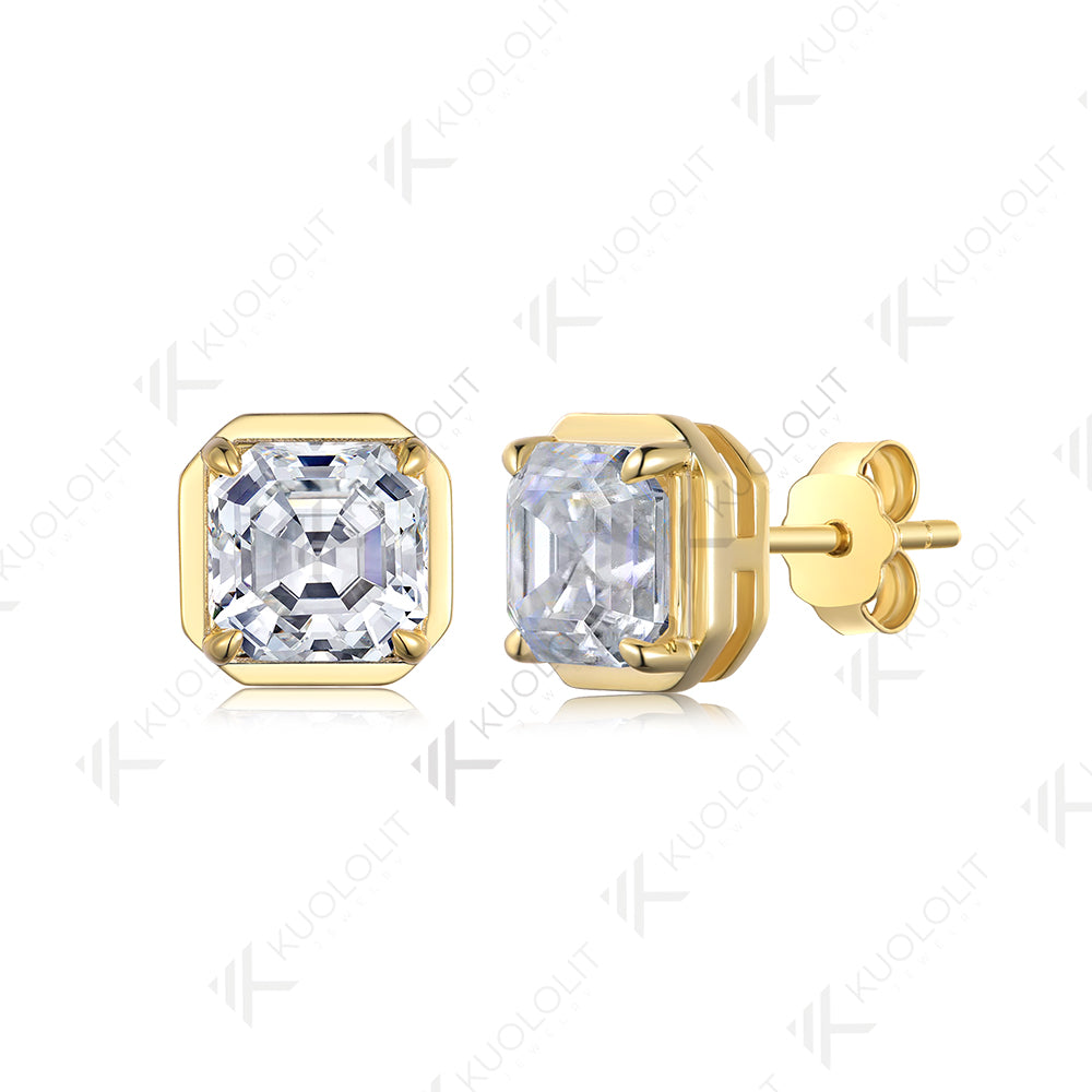 - Kuololit 3CTW Asscher Cut Moissanite Earrings for Women Solid 18K 14K 10K Gold Stub Earrings for Anniversary Engagement Gifts