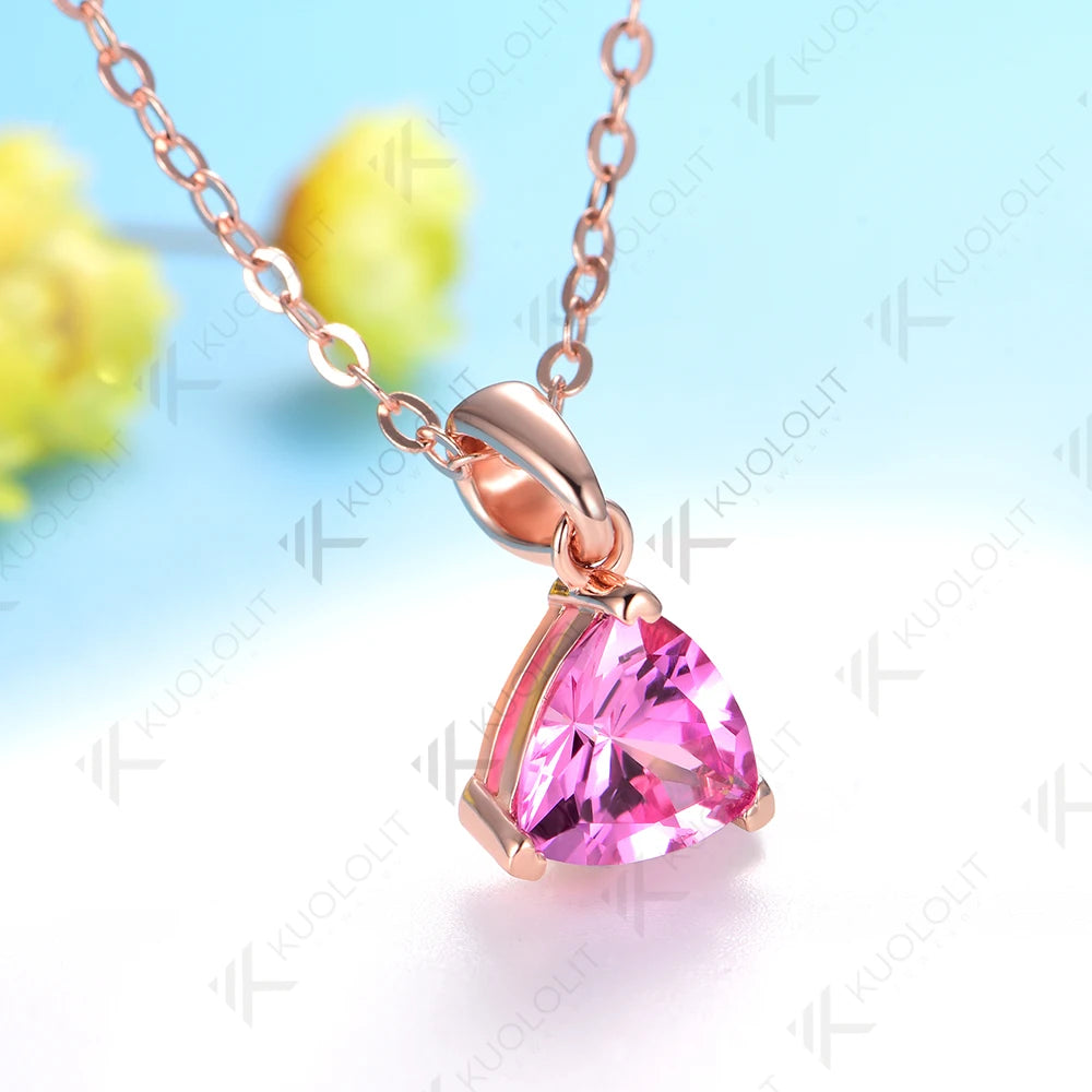 - Kuololit 1.2CT Lab Pink Sapphire Engagement Necklace for Women Solid 18K 14K 585 Rose Gold for Christmas Gifts Jewelry