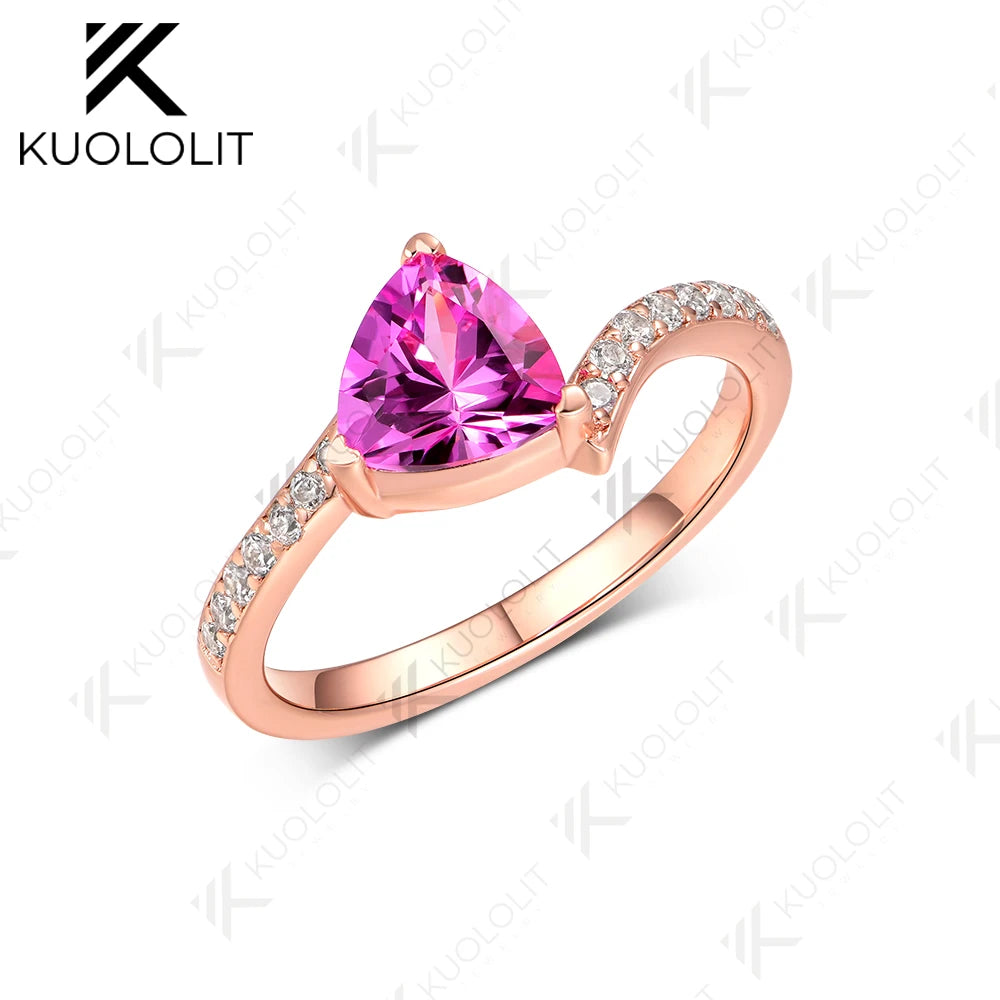 - Kuololit 1.2CT Trillyon Pink Sapphire Engagement Ring for Women Solid 18K 14K 10K 585 Rose Gold Moissanite Ring for Christmas