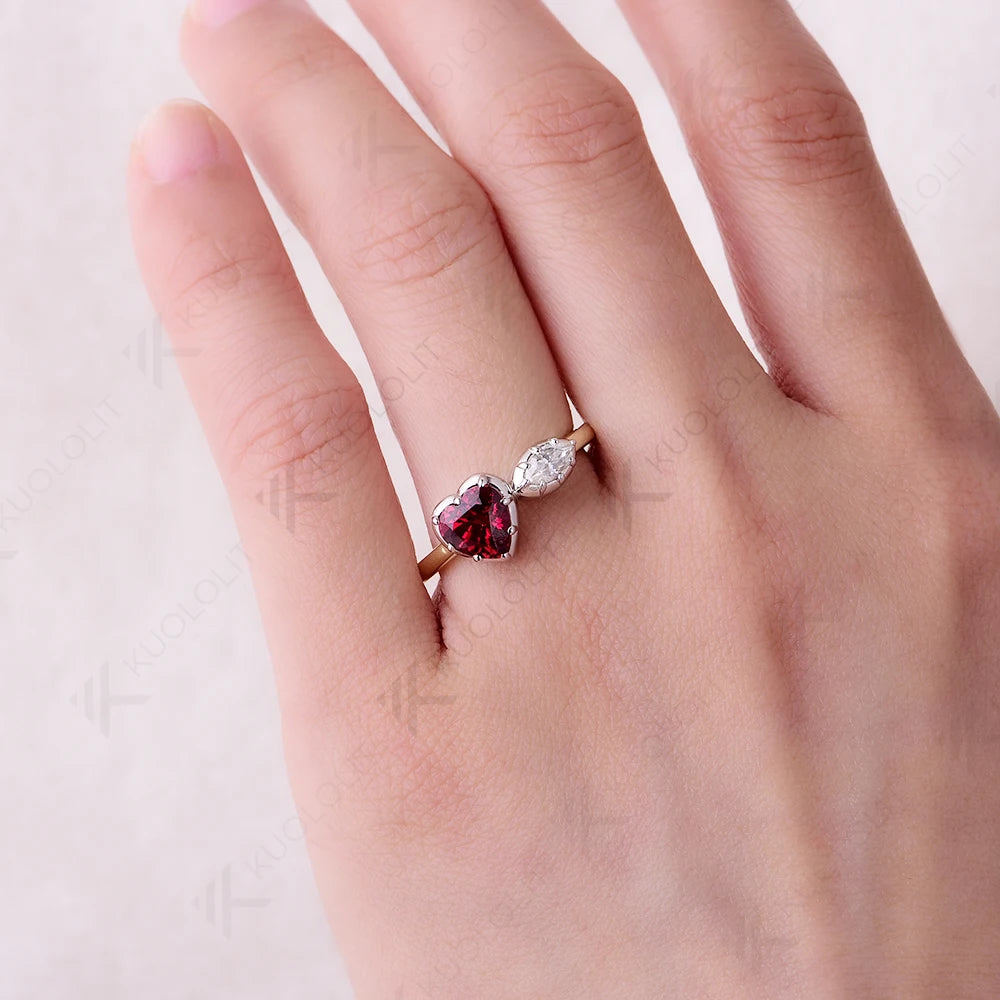 Kuololit 1.3CTW Lab Grown Diamond Ring for Women Solid 18K 14K 10K Gold Two Tone Ruby Gemstone Ring for Anniversary Engagement