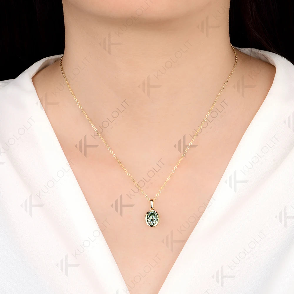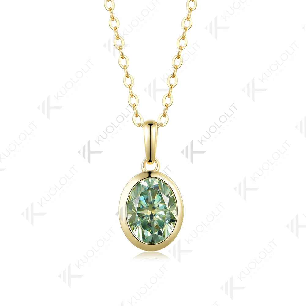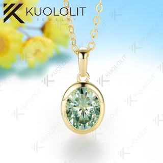 - Kuololit 2CT Cyan Moissanite Lab Grown Padparadscha Necklace for Women Men Solid 585 14K 10K Gold for Oval Engagement Party Christmas Gifts Anniversary