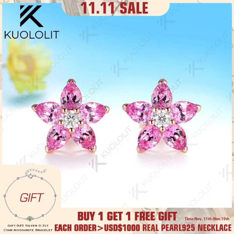 - Kuololit 3.1CTW Lab Grown Diamonds Pink Sapphire Stud Earrings for Women Solid 14K 10K 585 White Gold Earring for Christmas Gift