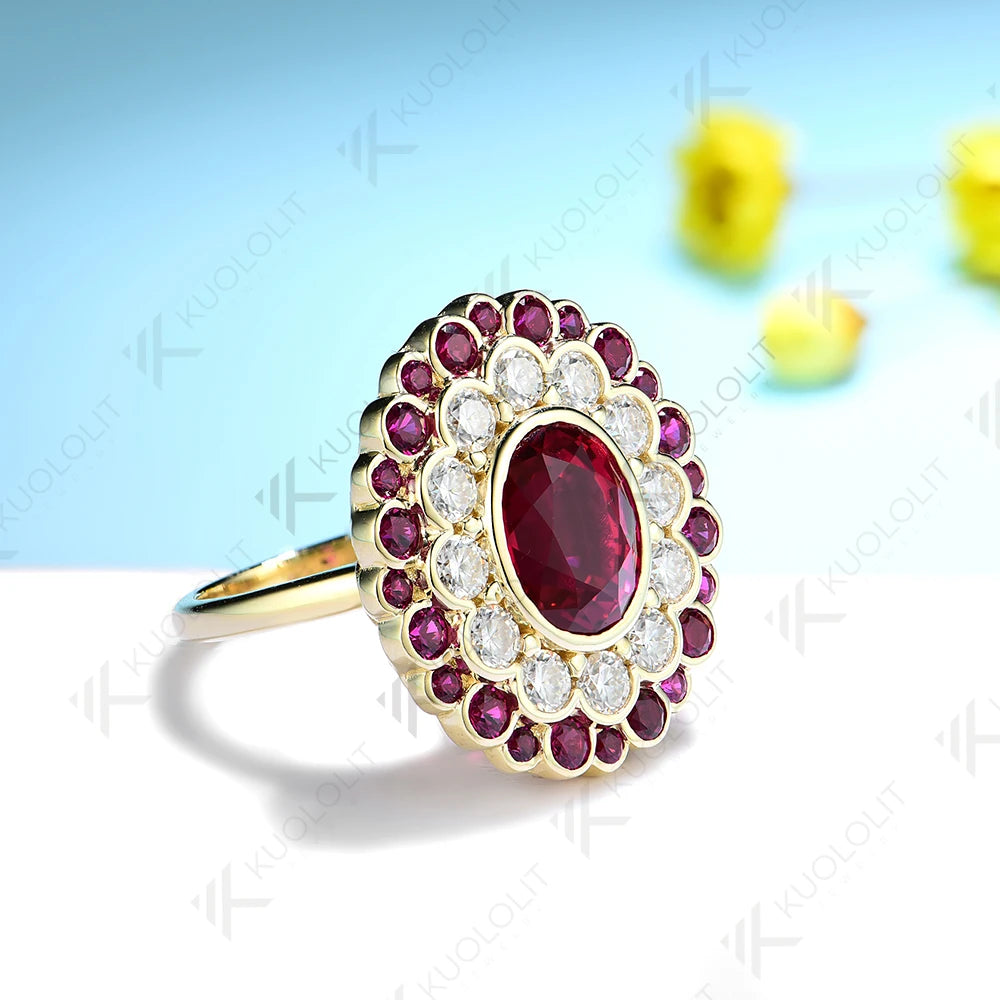 - Kuololit 3CT Lab Grown Ruby with Moissanite Rings for Women Olid 14K 10K 585 White Gold Silver for Engagement Wedding Christmas