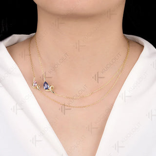 - Kuololit 3CTW Lab Grown Blue Pink Sapphire Necklace for Women Solid 14K 10K 585 Yellow Gold Pear Necklace for Christmas Gifts
