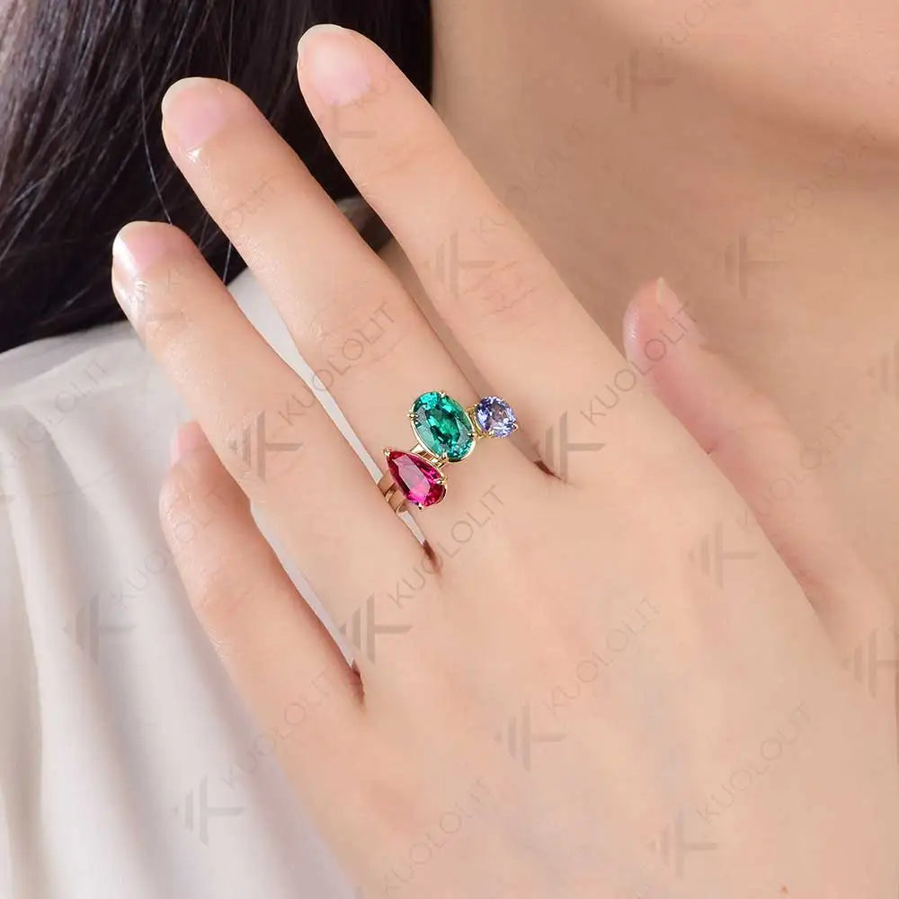 - Kuololit 6.5CTW Lab Grown Eemerald Ruby Blue Sappphire Rings for Women Soild 14K 585 Gold Set Ring for Engagement Christmas Gift