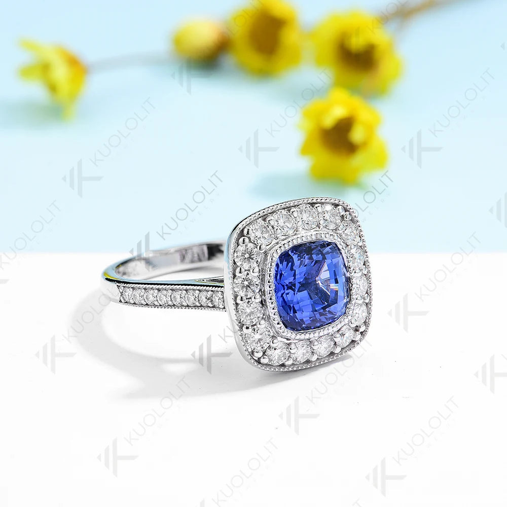 - Kuololit 2.5CT Lab Grown Blue Sapphire Ring for Women Solid 18K 14K 10K 585 Yellow Gold Moissanite Ring for Engagement Christmas