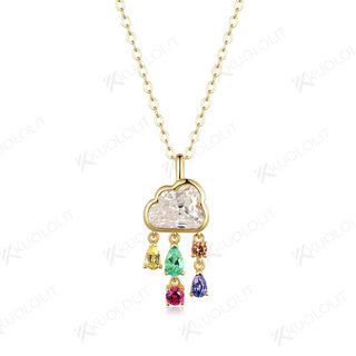 Kuololit 2ct Cloudy Moissanite Necklace for Women Solid 18K 14k Gold Lab Grown Gemstones Rainny Necklace for Wedding Christmas