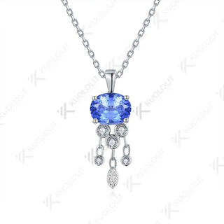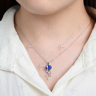 - Kuololit 3CT Lab Grown Blue Sapphire with Moissanite Necklace for Women Solid 18K 14K 10K 585 Yellow Gold Pendant for Christmas