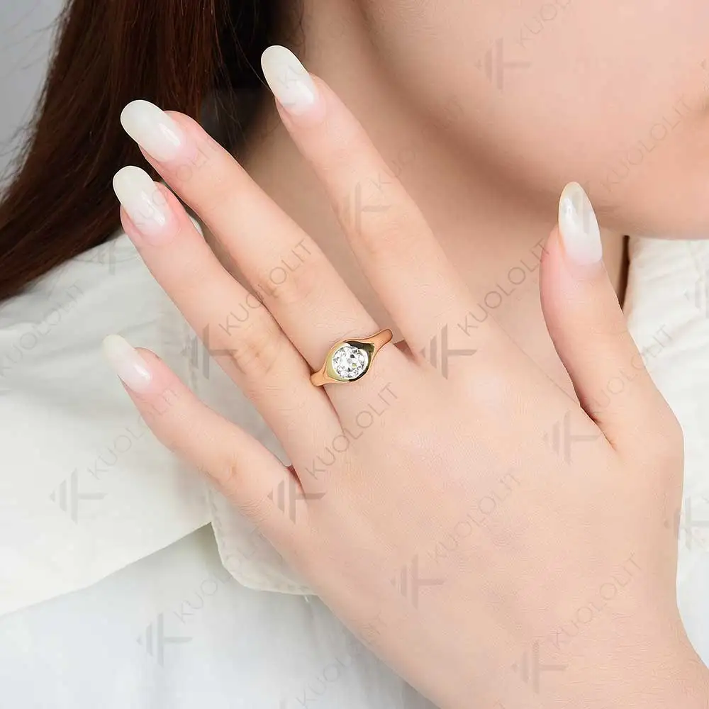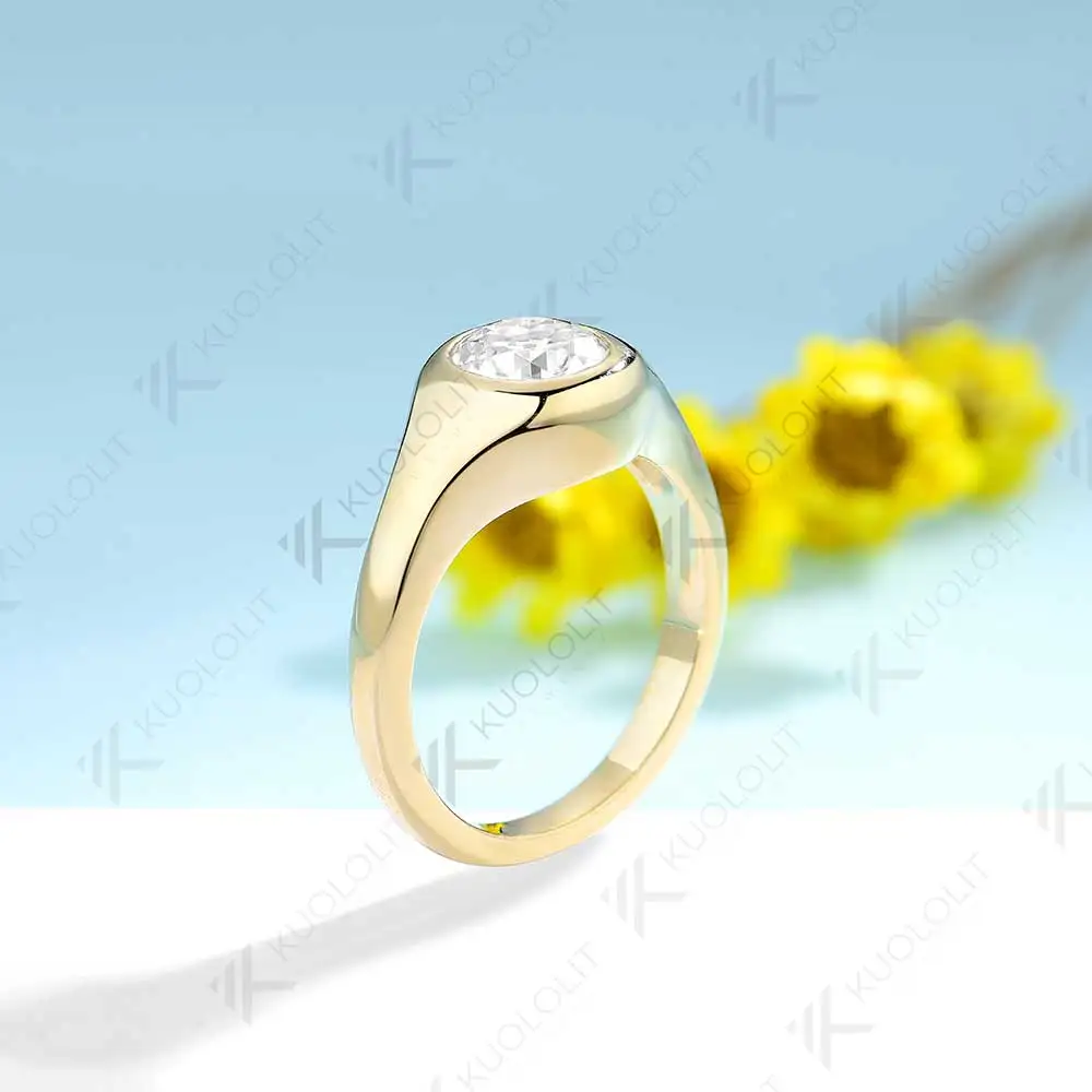 - Kuololit 1CT OEC Moissanite Rings for Women Soild 10K 14K Yellow Gold Bezel Set Diamond Ring for Engagement Christmas Gifts