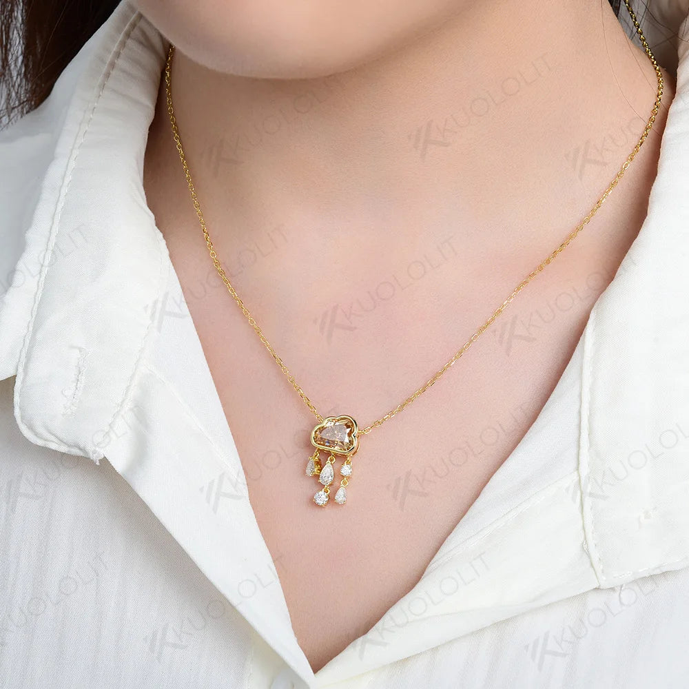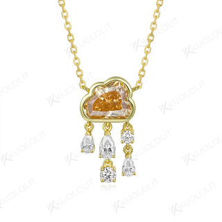 - Kuololit 2CT Champagne Cyan Cloudy Moissanite Necklace for Women Solid 14K 10K 585 Rose Gold Wedding Necklace for Christmas Gift