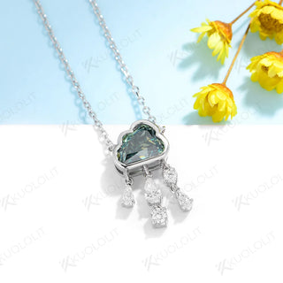 Kuololit 2CT Champagne Cyan Cloudy Moissanite Necklace for Women Solid 14K 10K 585 Rose Gold Wedding Necklace for Christmas Gift
