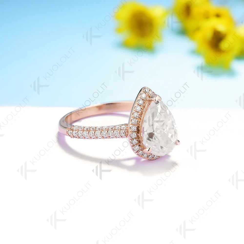- Kuololit 2CT Crushied Ice Cut Pear Moissanite Ring for Women Solid 14K 10K 585 Yellow Gold Halo for Engagement Wedding Christmas