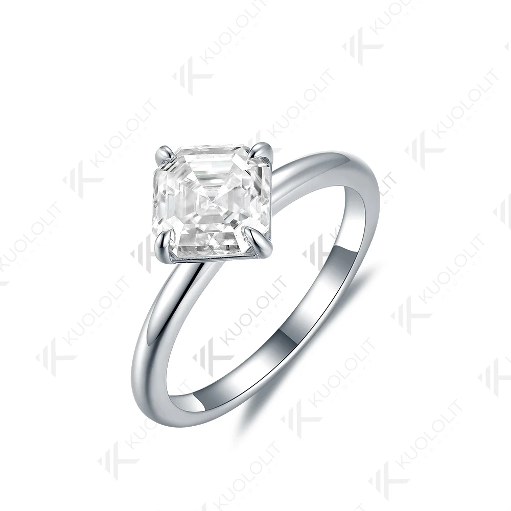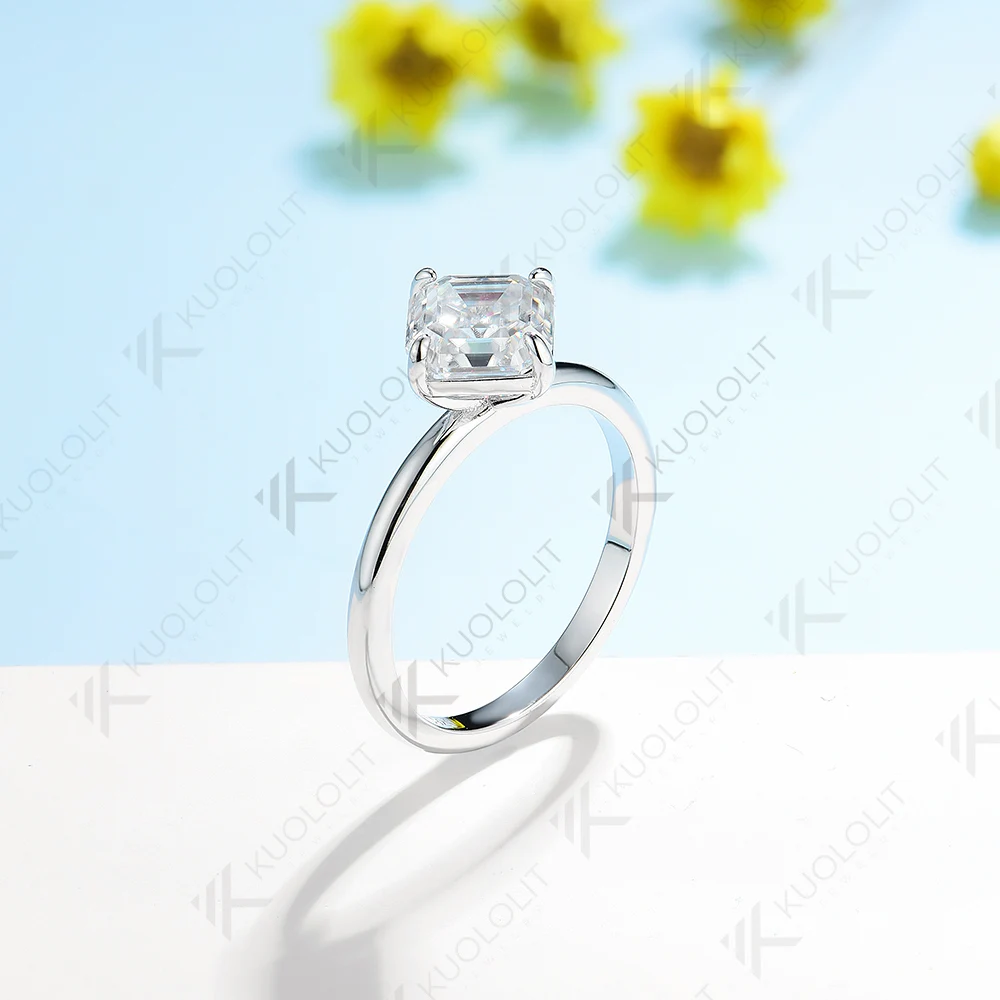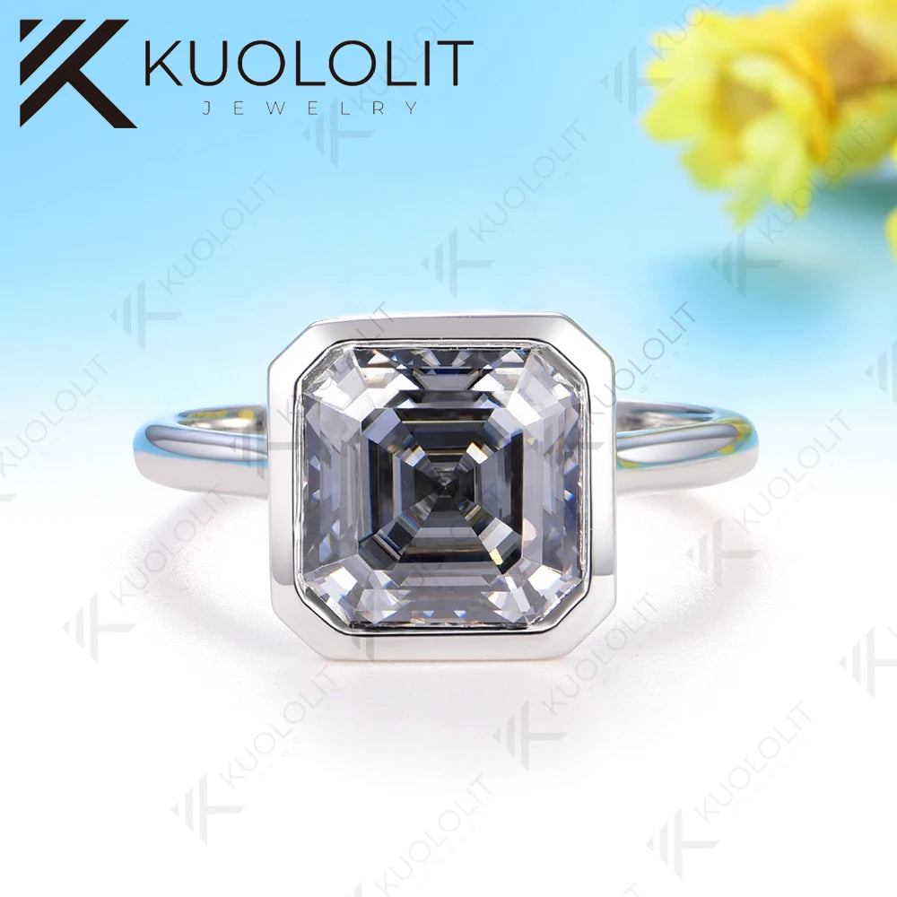 - Kuololit 3.5CT Gray Moissanite Asscher Cut Ring for Women Solid 14K 10K 585 White Gold for Engagement Wedding Christmas Gifts
