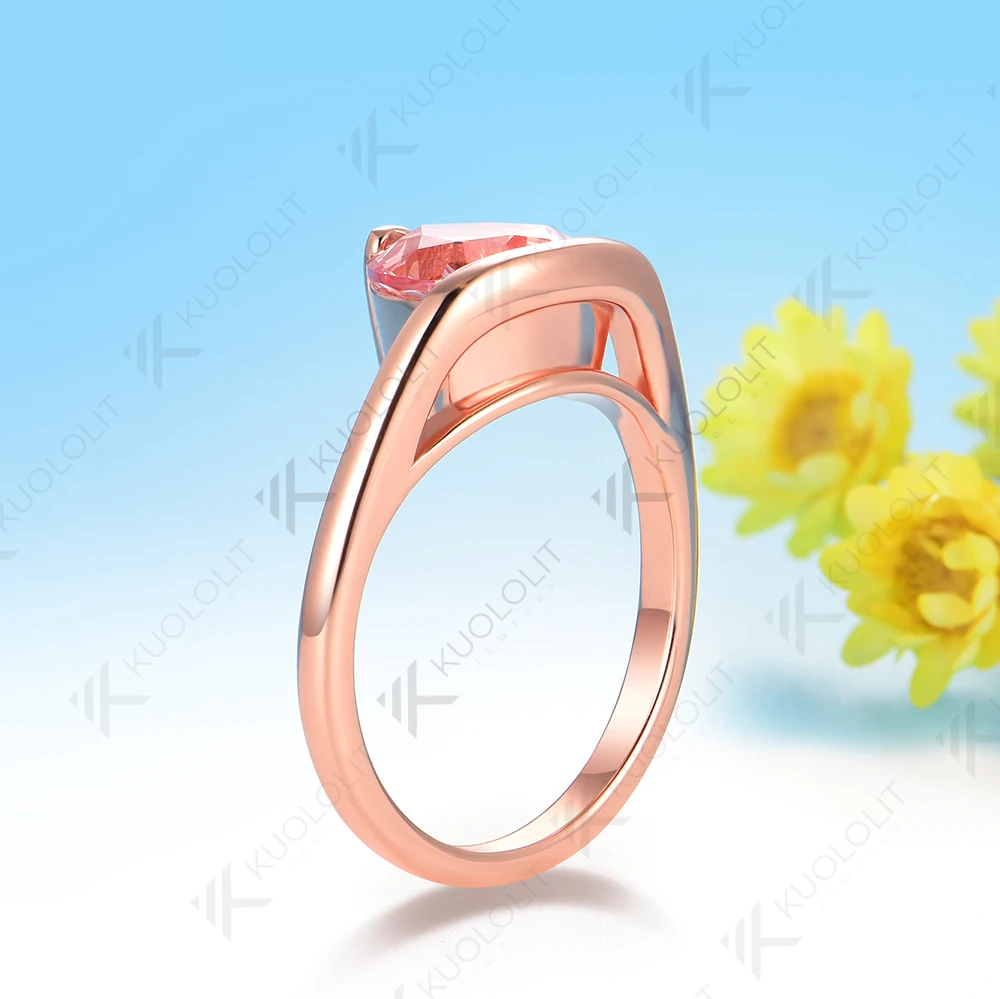- Kuololit 3CT Lab Grown Pink Sapphire Trillyon Cut Ring for Women Solid 14K 10K 585 Rose Gold Engagement Ring for Christmas Gifts