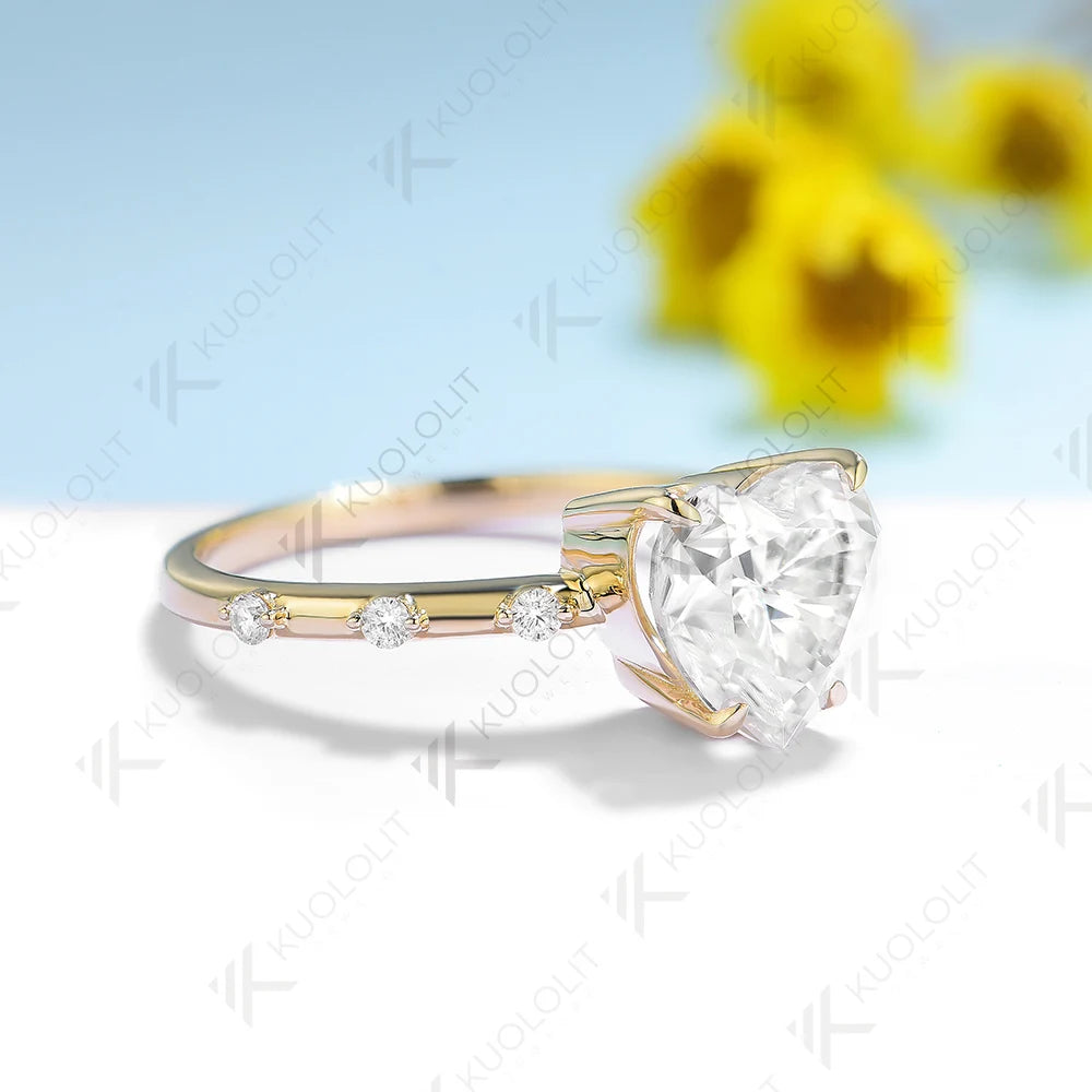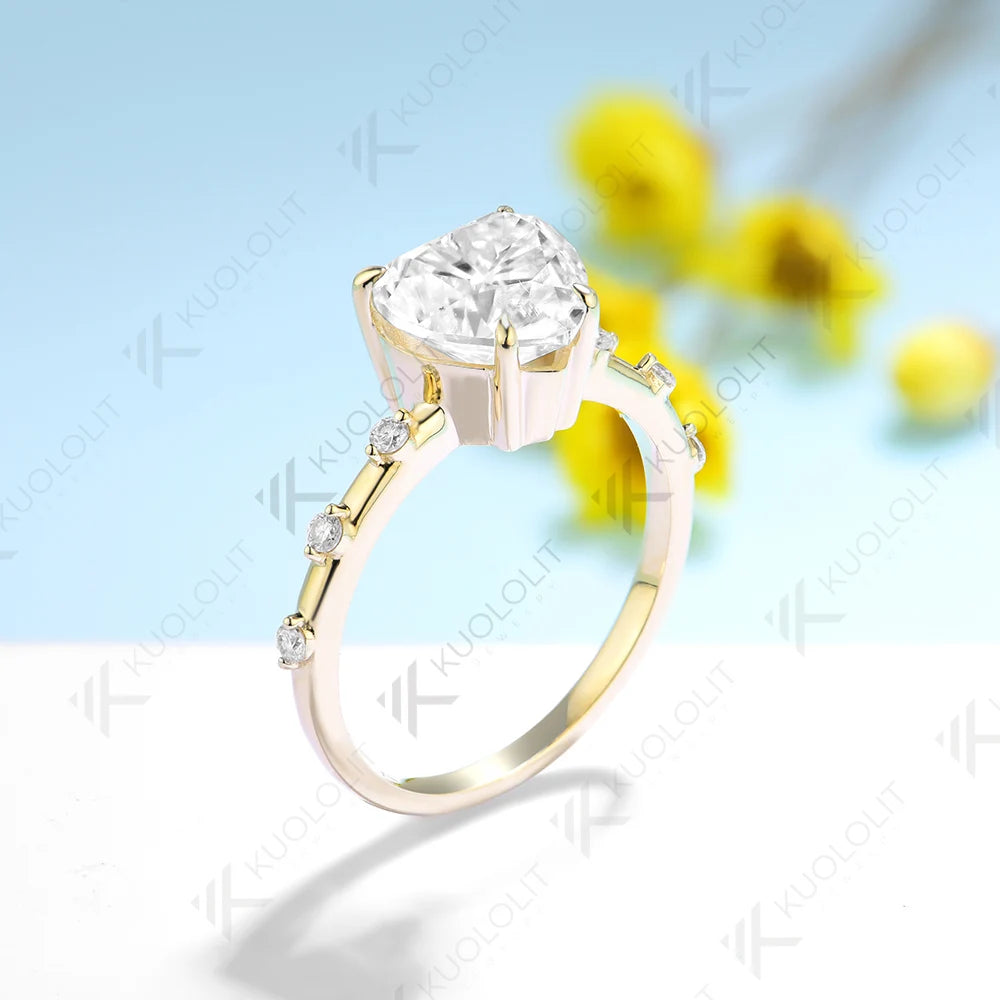 - Kuololit 3CT Moissanite Engagement Ring for Women Solid 18K 14K 10K 585 Yellow Gold Heart Ring for Anniversary Christmas Gifts
