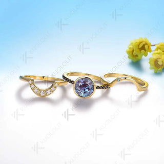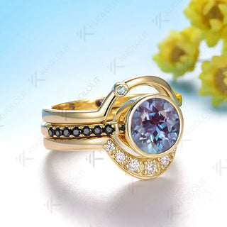 - Kuololit 2CT Lab Grown Alexandrite with Moissanite Set Ring for Women Solid 14K 10K 585 Yellow Gold for Christmas Gifts Party