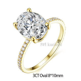 - Kuololit 3CT Oval Cut Moissanite Solid 18K 14K Yellow Gold Ring for Women Hide Halo D VVS Solitaire Ring for Engagement Party