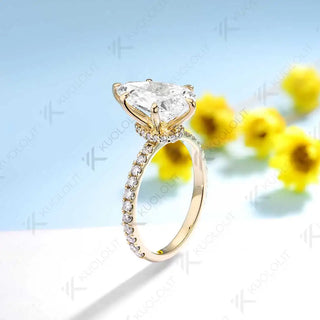 - Kuololit 4.5CT Pear Cut Moissanite Rings for Women Solid 18K 14K 10K 585 Yellow Gold Pear Cut for Engagement Christmas Gifts