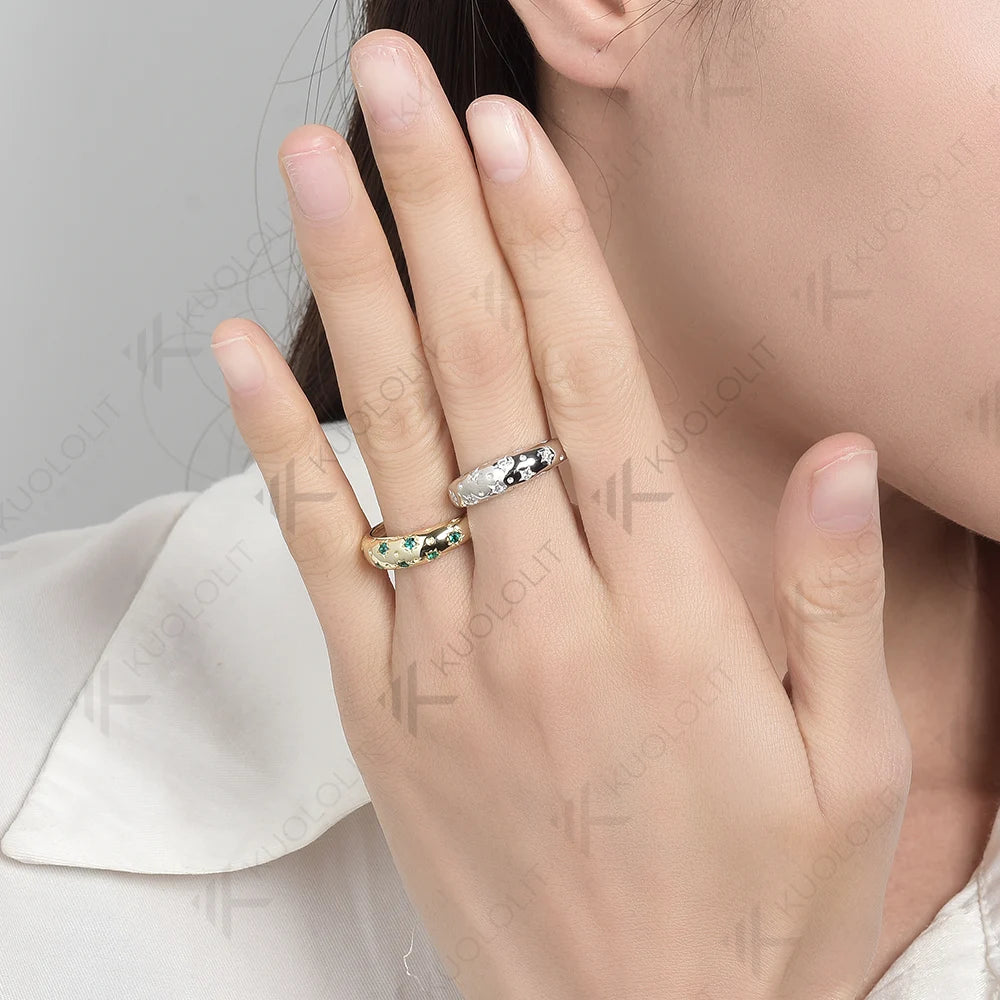 - Kuololit 0.21CTW Lab Grown Emerald Starburst Band Rings Engagement Rings for Women Men Solid 14K Gold for Wedding Christmas Gift