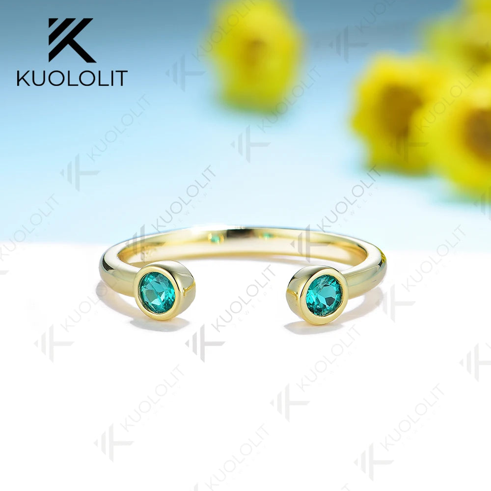 - Kuololit 0.2ctw Lab Grown Emerald Solid 18K 14K 585 Yellow Gold 925 Silver for Women Wedding Band Engagement Christmas Party