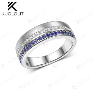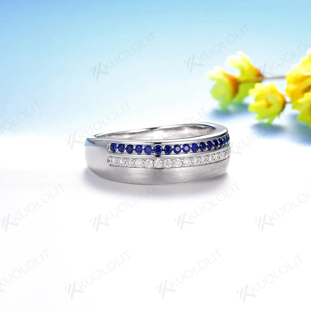 - Kuololit 0.55CTW Moissanite Lab Grown Sapphires Band for Men Women Sliver Solid14K 10K Gold Ring for Anniversary Engagement Gift
