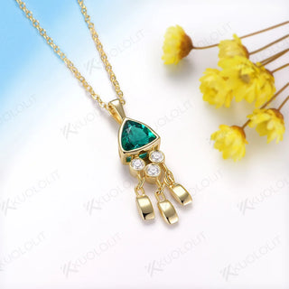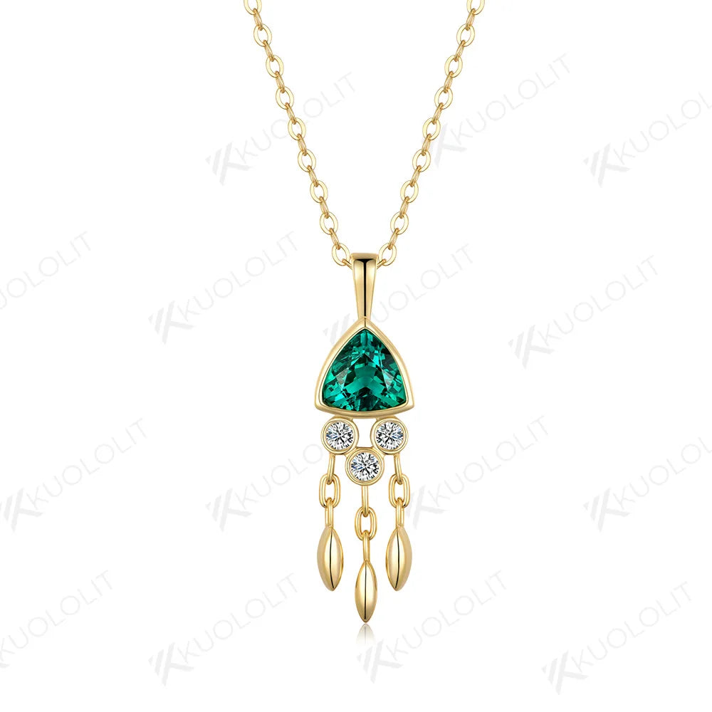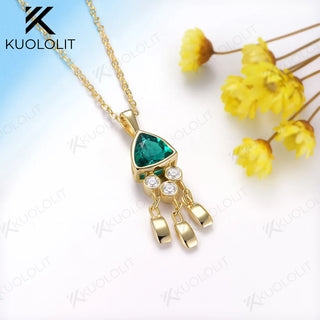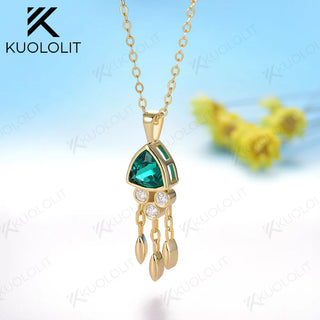 - Kuololit 1.2CT Lab Grown Emerald Jellyfish Necklace for Women Solid 18K 14K 10K 585 Yellow Gold Moissanite Pendant for Christmas