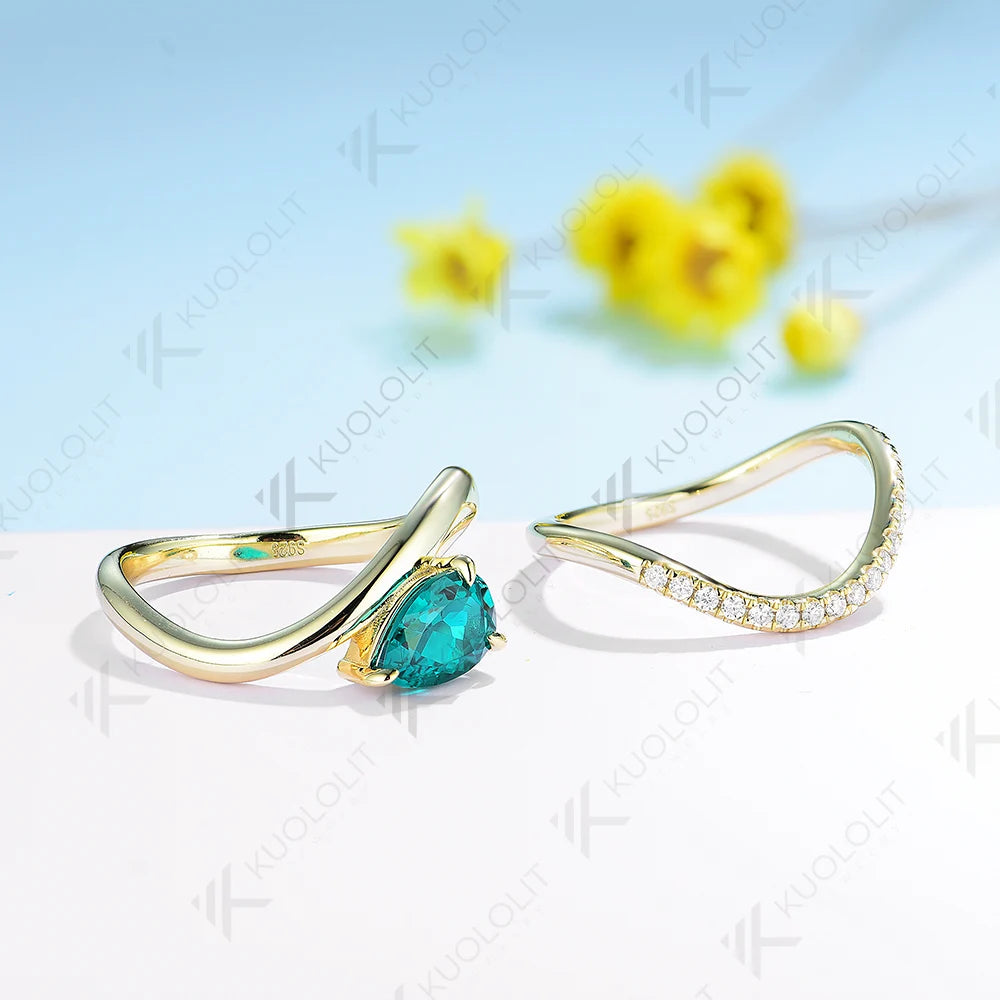 - Kuololit 1.5CT Pear Cut Lab Grown Emerald Sets Engagement Rings for Men Women Solid 10K 14K 18K Gold For Wedding Christmas Gift