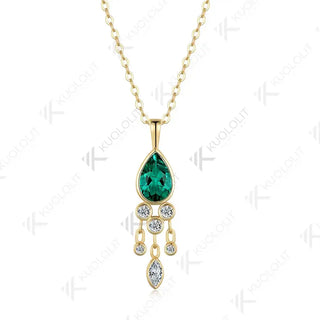 - Kuololit 1.6CT Lab Grown Emerald and Moissanite Necklace for Women Solid 18K 14K 10K 585 Yellow Gold Pear Pendant for Christmas