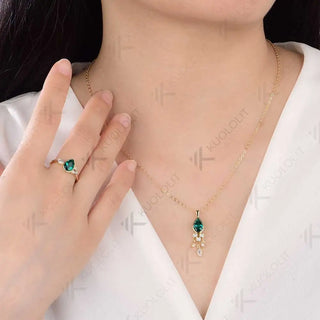 Kuololit 1.6CT Lab Grown Emerald and Moissanite Necklace for Women Solid 18K 14K 10K 585 Yellow Gold Pear Pendant for Christmas