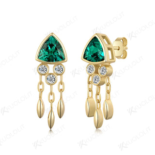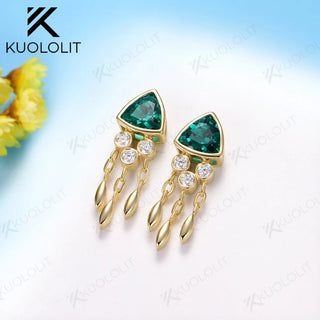 - Kuololit 2.4CTW Lab Grown Emerald Jellyfish Stud Earrings for Women Solid 14K 10K 585 Gold Moissanite Earrings for Christmas