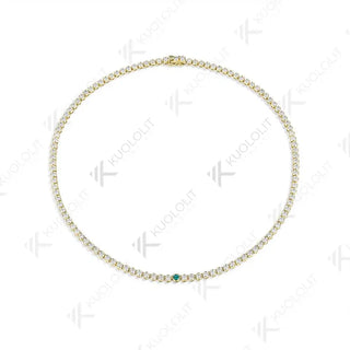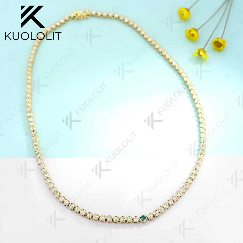 - Kuololit 7CTW Lab Grown Emerald Tennis Necklace for Women Solid 18K 14K 10K Gold Moissanite Necklace for Party Christmas Gifts
