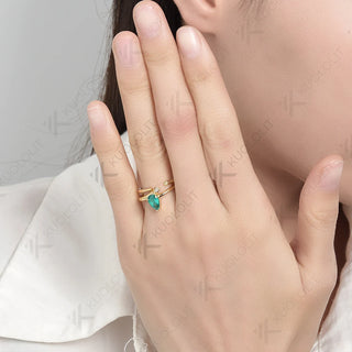 Kuololit1.0CTW Lab Grown Emerald and Moissanite Gemstone Ring for Women Solid18K14K10KYellow Gold for Christmas Anniversary Gift
