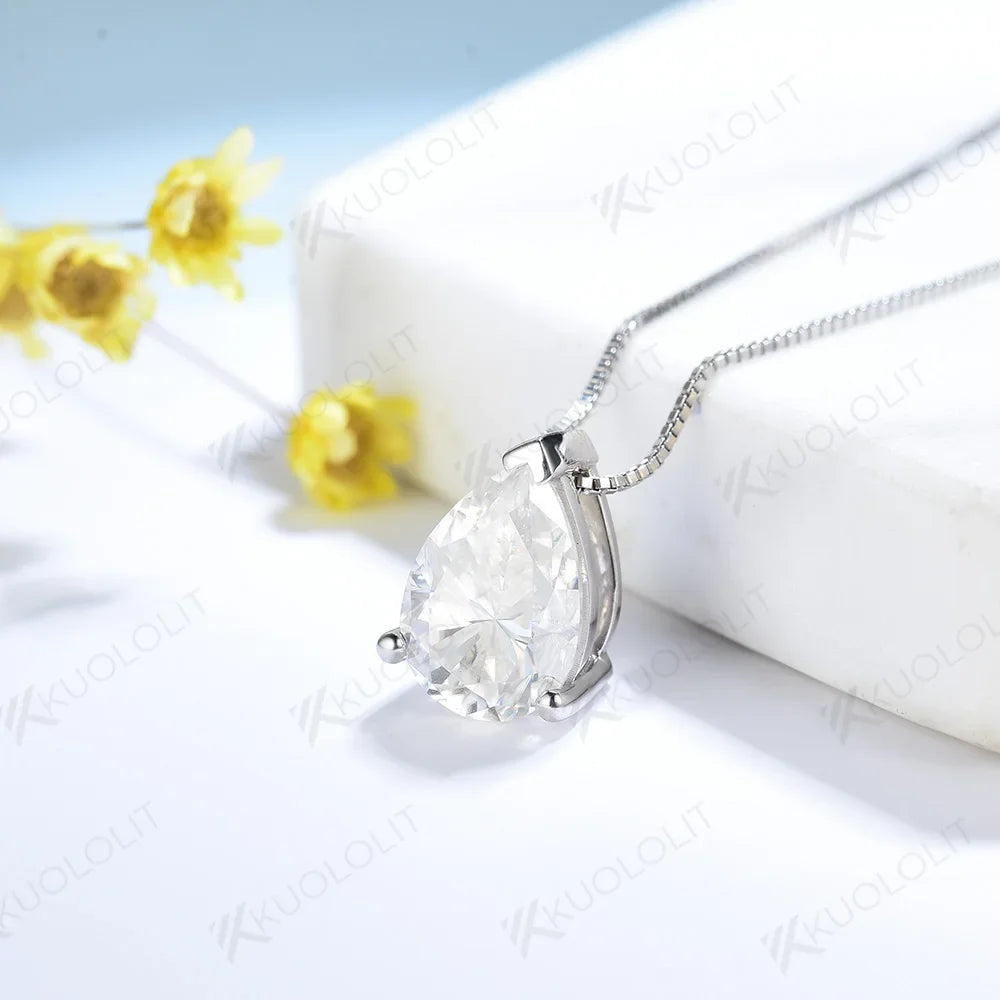 - Kuololit 2CT Pear Cut Moissanite Necklaces for Women Solid 10K 14K 18K 925 Sliver Water Drop Pendant with Chain for Engagement