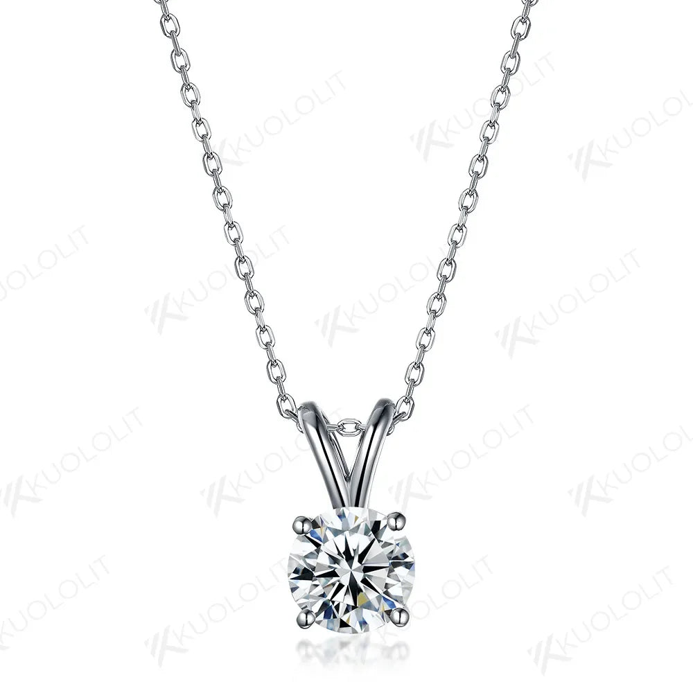 - Kuololit 3CT Round Moissanite Necklaces for Women Solid 10K 14K 18K 925 Sliver 1CT 2CT Ear Pendant with Chain for Engagement New