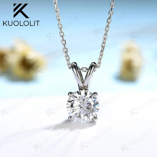 Kuololit 3CT Round Moissanite Necklaces for Women Solid 10K 14K 18K 925 Sliver 1CT 2CT Ear Pendant with Chain for Engagement New
