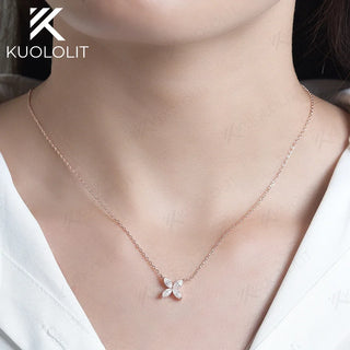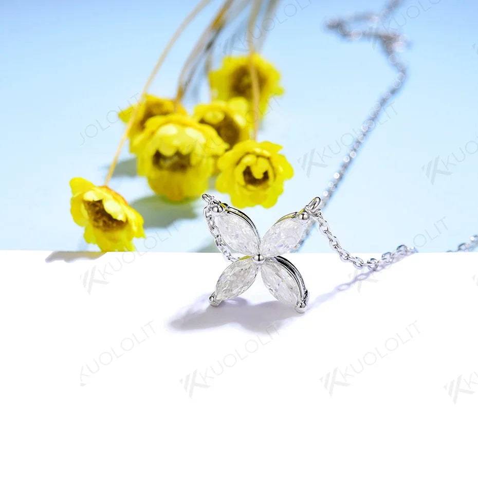 Kuololit Marquise Moissanite Earrings Necklace for Women solid 18K 14K Gold 925 silver Flower Earrings and Necklace for party