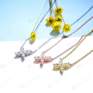 - Kuololit Marquise Moissanite Earrings Necklace for Women solid 18K 14K Gold 925 silver Flower Earrings and Necklace for party