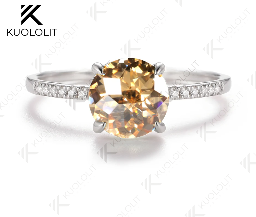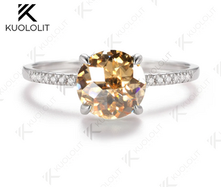 - Kuololit 2CT jubilee Cyan Champagne Moissanite Engagement Ring for Women Solid 925 White Gold for Valentine's Day Gifts Party