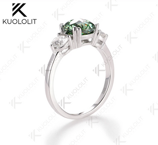 - Kuololit 2CT Jubilee Cut Cyan Moissanite and 0.8ct White Moissanite Rings for Women Round Cut Solitaire Ring for Christmas