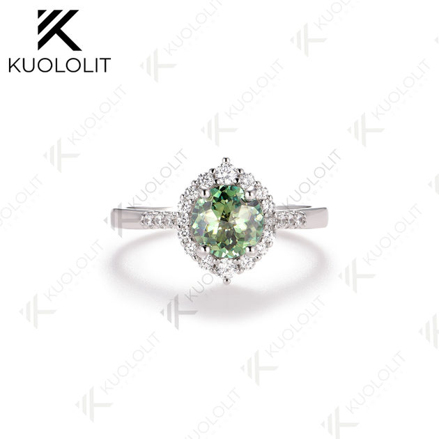 Kuololit 1.2CT Jubilee Cut Cyan Round Moissanite Ring for Women Solid 925 White Gold Engagement Ring for Christmas Gifts Party