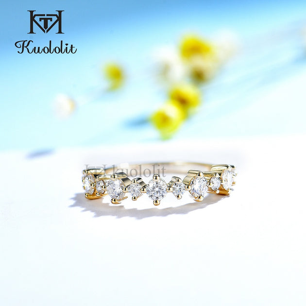 Bague Kuololit 585 en or jaune 18K et 14K, sertie de diamants ronds D et VVS, idéale pour les fiançailles et les fêtes (nouvelles tendances 2022).