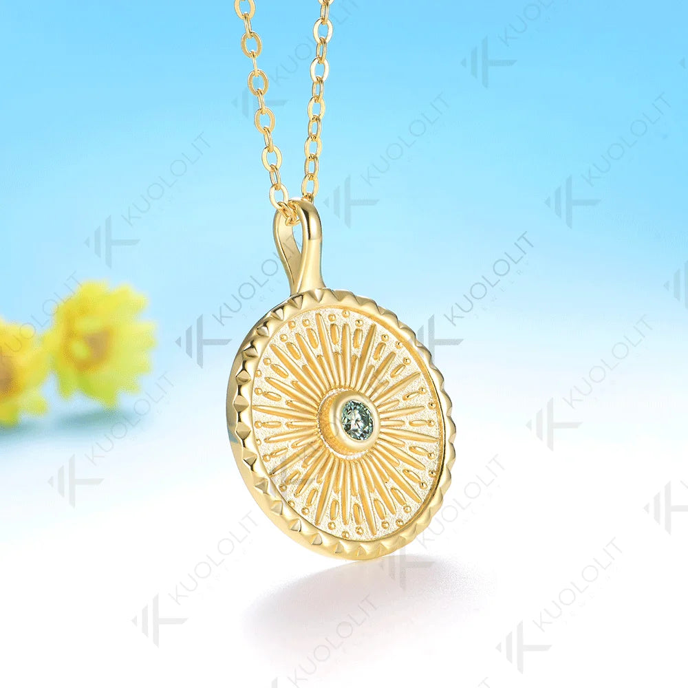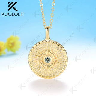 - Kuololit 0.1CT Cyan Moissanite Necklace for Women Solid 14K 10K Yellow Gold Engagement Ring for Christmas Gift Party Anniversary