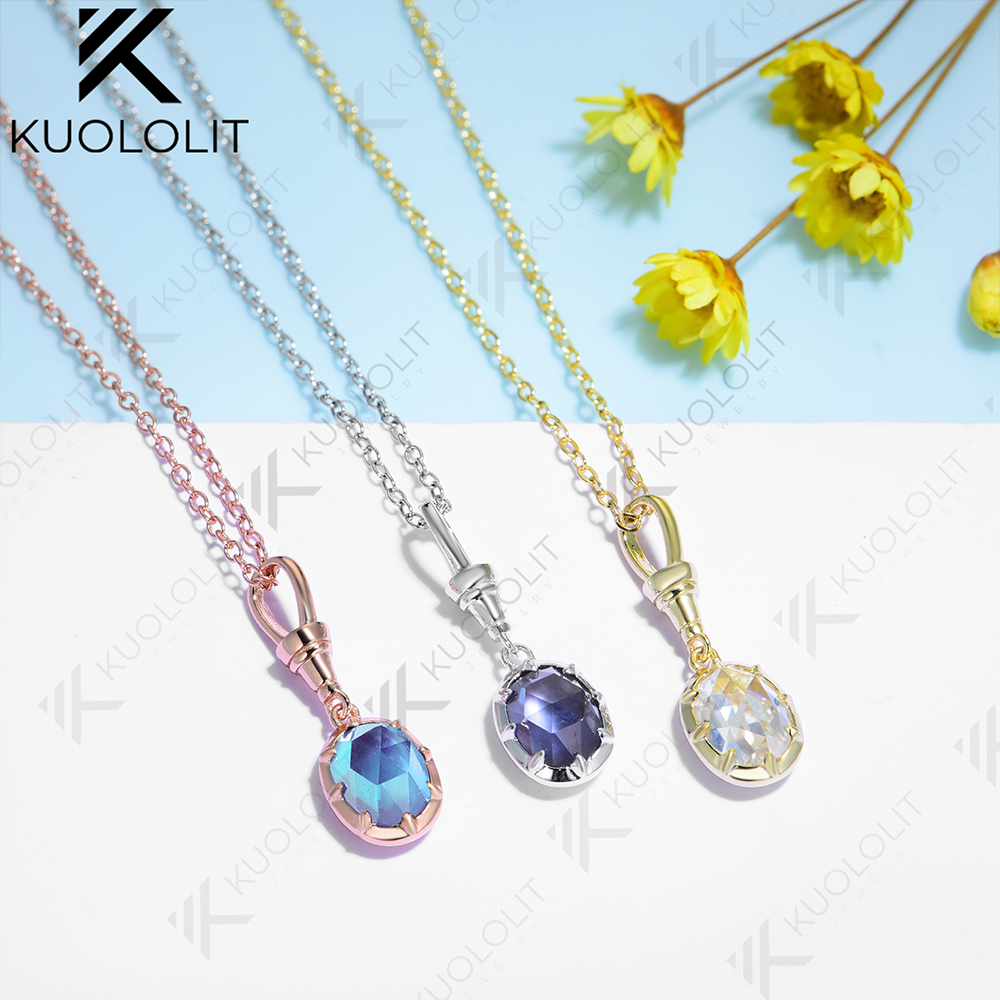 - Kuololit 1.5CT Rose Cut Moissanite Lab Grown Alexandrite Necklace for Women 925 Silver Sterling Oval Cut Gemstone Pendant for Christmas Gifts Party
