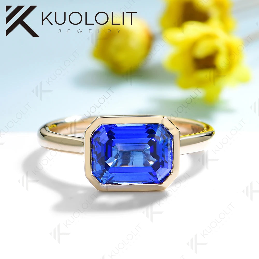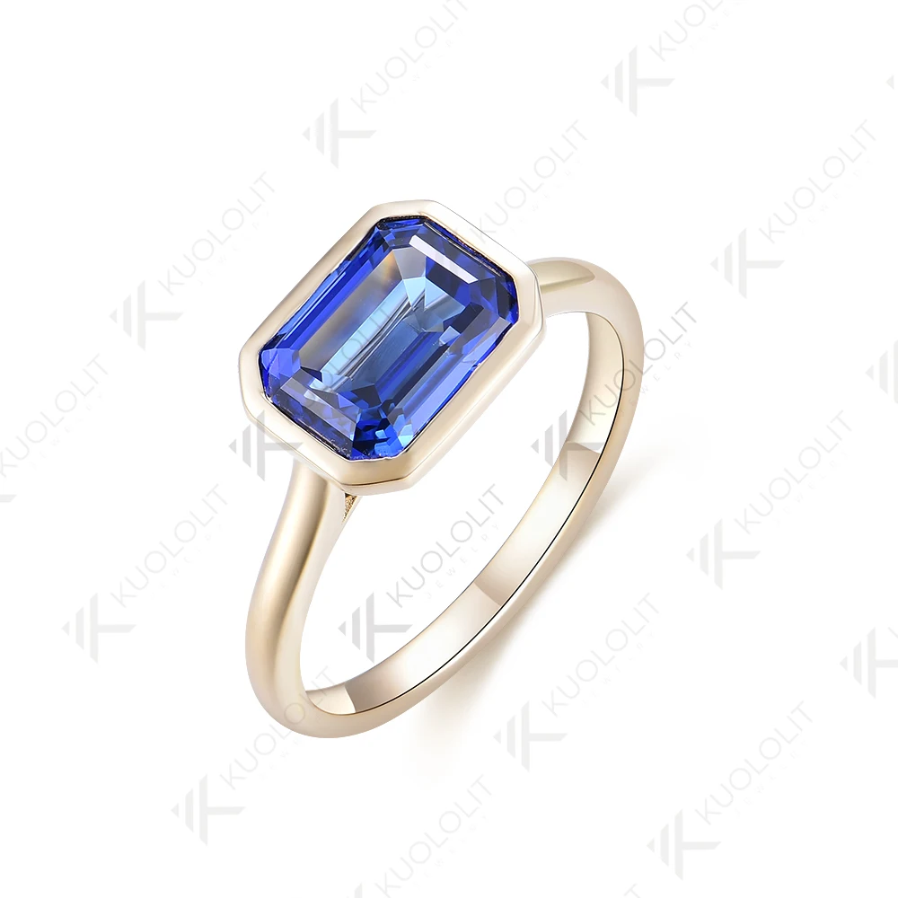 - Bague Kuololit en or massif 14K, 10K ou 585, sertie d'un saphir bleu de laboratoire de 2 carats. Bague de fiançailles idéale pour Noël ou une fête.