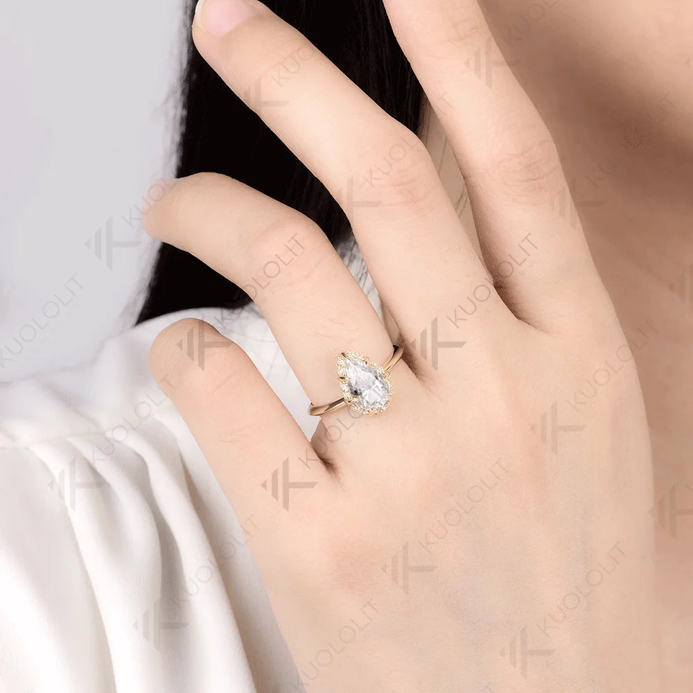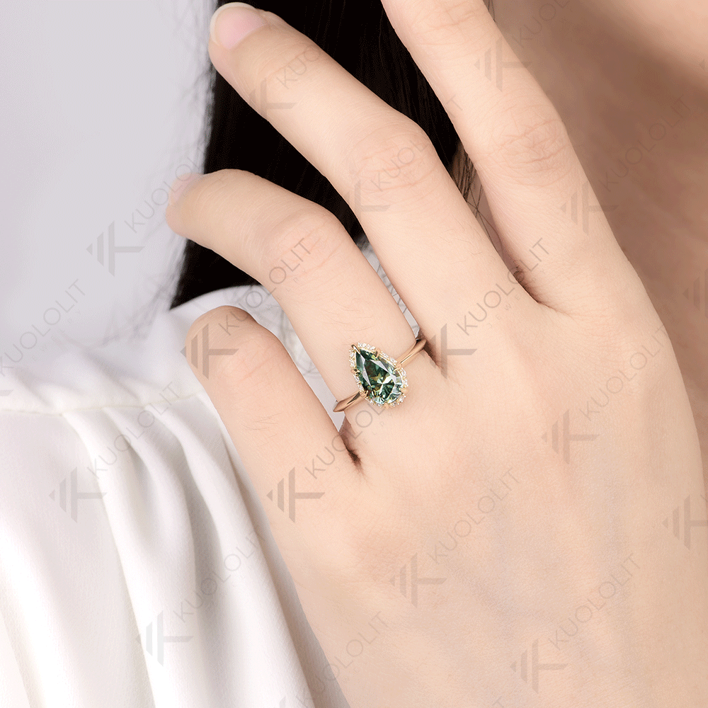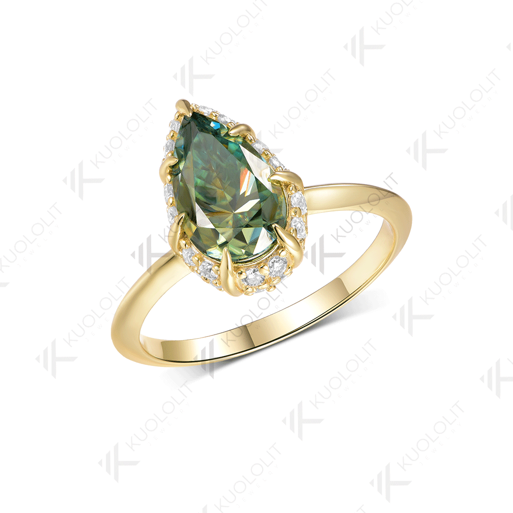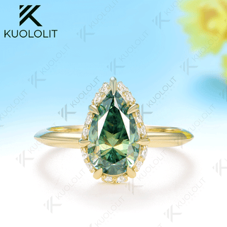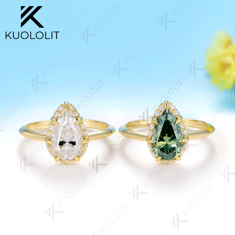 - Kuololit 2CT Pear Cut Cyan Moissanite Rings for Women Solid 14K 10K 585 Yellow Gold Pear Cut for Engagement Christmas Gifts Party
