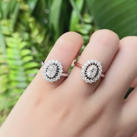 Kuololit 1ct Oval Cut White Moissanite and Balck Moissanite Ring for Women Solid 14K 10K 585 Rose Gold for Engagement Christmas
