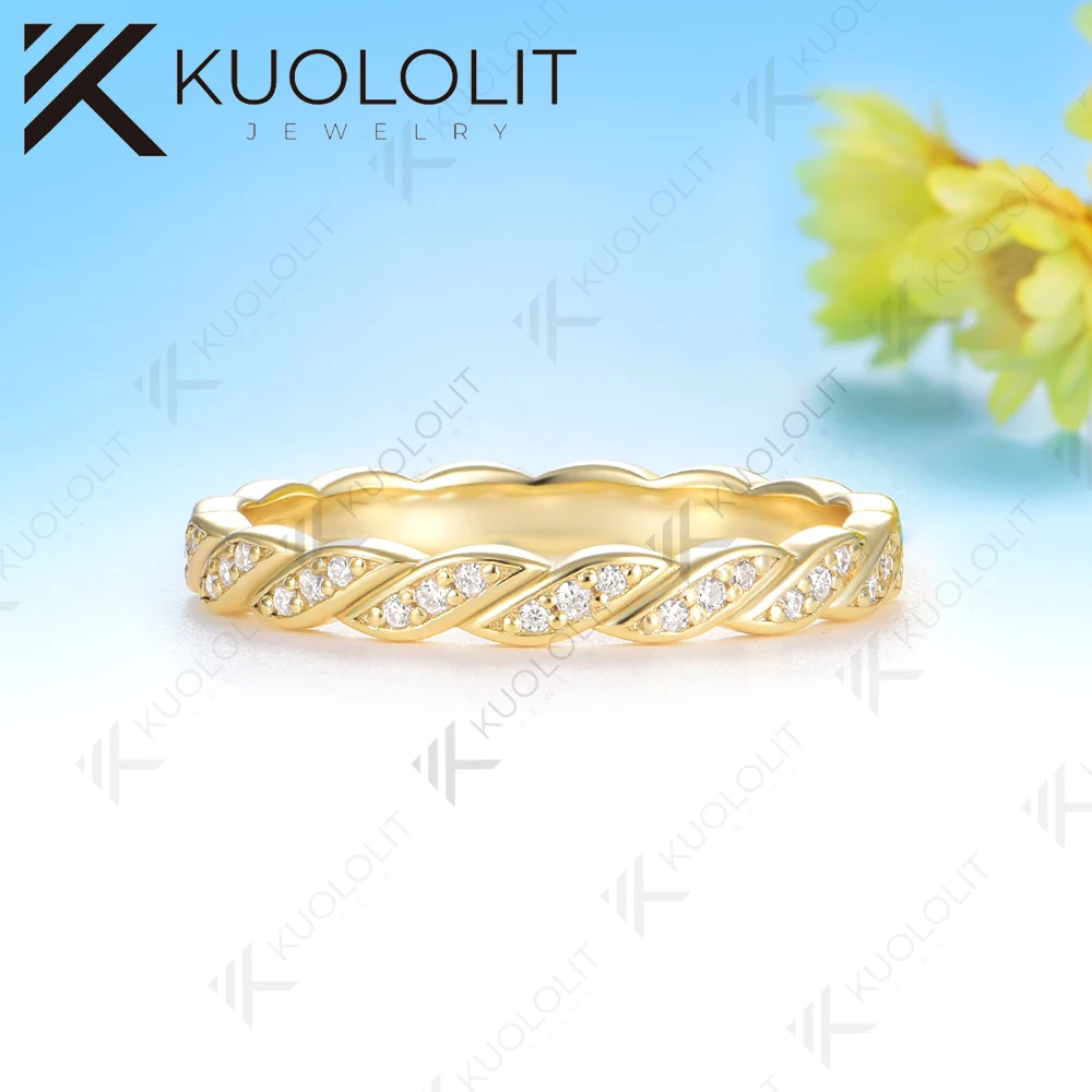 Kuololit 0.48CTW Moissanite Band for Women Men Solid14K 10K Yellow Gold Eternity Band for Anniversary Christmas Gifts Party