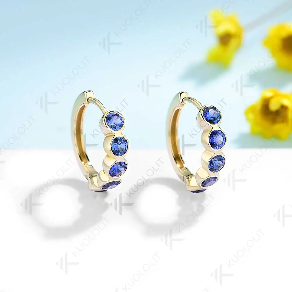 Kuololit 1CTW Lab Grown Blue Sapphire Hoop Earrings for Women Solid14K 10K Gold Silver Yellow Gold Clip Hoop for Party Christmas