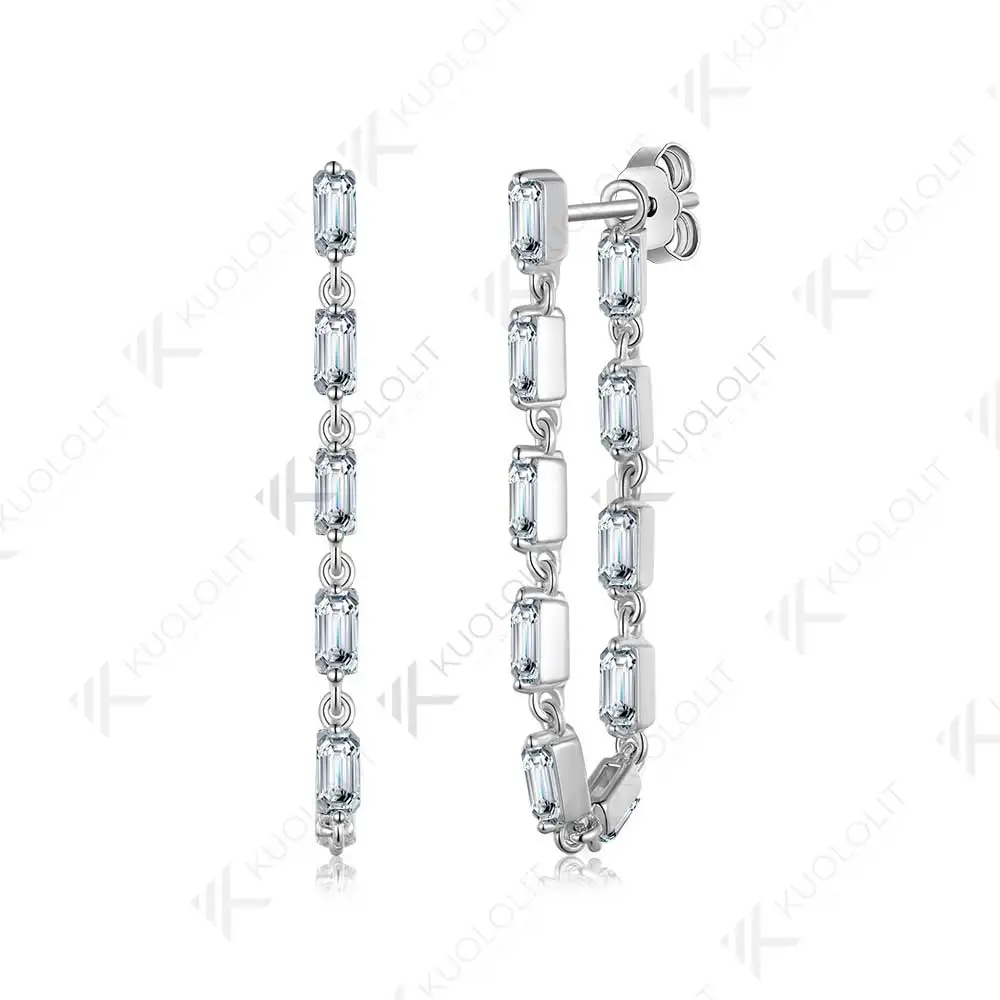 Kuololit 2CTW Moisssanite Stub Earrings for Women Solid 18K 14K 10K 585 Yellow Gold Emerald Cut Clip Earring for Christmas Gifts