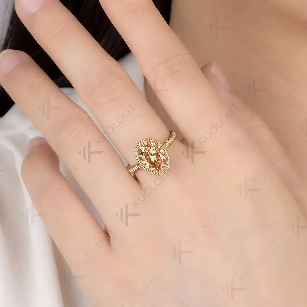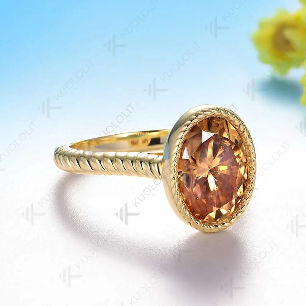 Kuololit 3.5CT Champagne Moissanite Ring for Women Soild 10K 14K Yellow Gold Bezel Set Oval Ring for Engagement Christmas Gifts